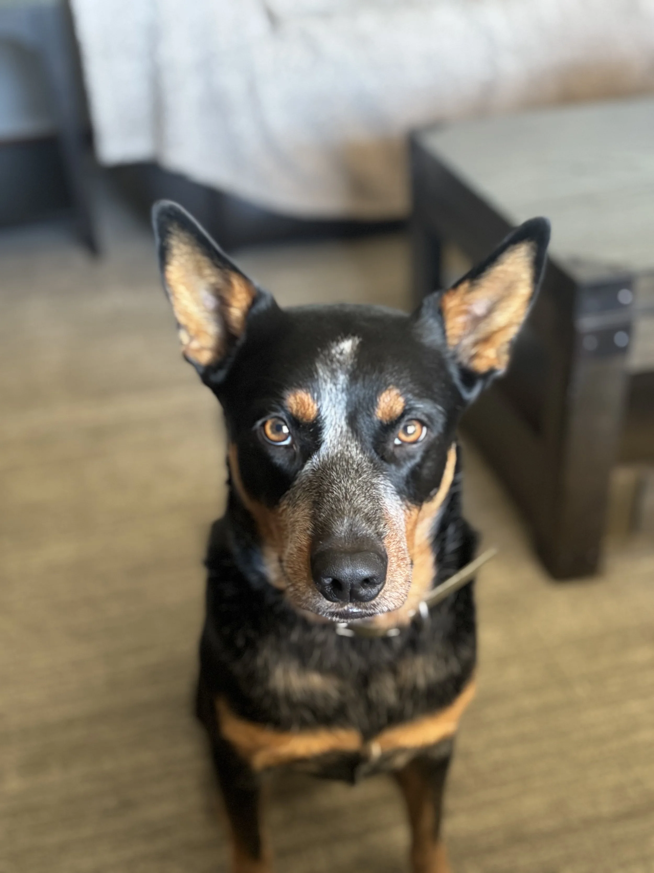 When you think of a cattle dog, think of Rip. He’s deeply devoted, thriving on one-on-one time and turns jealous when his beloved human dad shares attention with the other dogs. Fiercely protective of his family and territory, he sounds the alarm with a piercing, high pitched bark and isn’t afraid to nip at an intruders heels or hands. This cattle dog is a bundle of intense energy and unwavering loyalty, embodying the breed’s classic herding instincts to a tee.